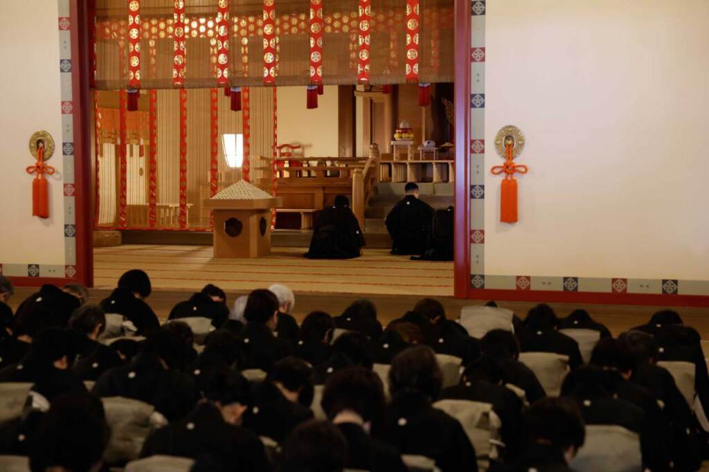 教会本部の3月月次祭は26日、中山大亮様祭主のもと、本部神殿で執り行われた。 大亮様は祭文の中で、果てしない親心と自由のご守護のまにまに、ひたすら成人の道へとお導きくださる親神様のご慈愛に御礼申し上げ・・・