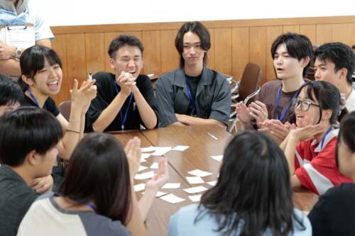 8月12日午後、「グループタイム」で神様のお働きについて班の仲間と語り合っていたのは、大北和一さん(17歳・髙井分教会所属・長野市)。「期間中に神様の親心にふれる中で、少しずつ心の向きが変わっていったと感じる」