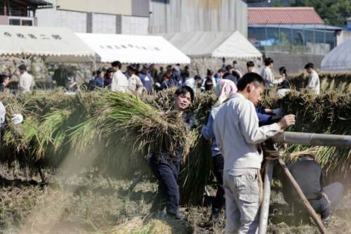 秋恒例の本部「稲刈り」が10月23日、天理高校農事部杣之内農場で行われた。 この伝統行事は、「おふでさき」などの原典に見られる、農事にたとえられた教えを肌で味わおうという中山正善・二代真柱様の思いから・・・