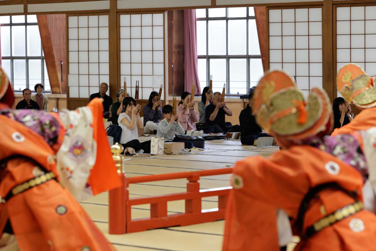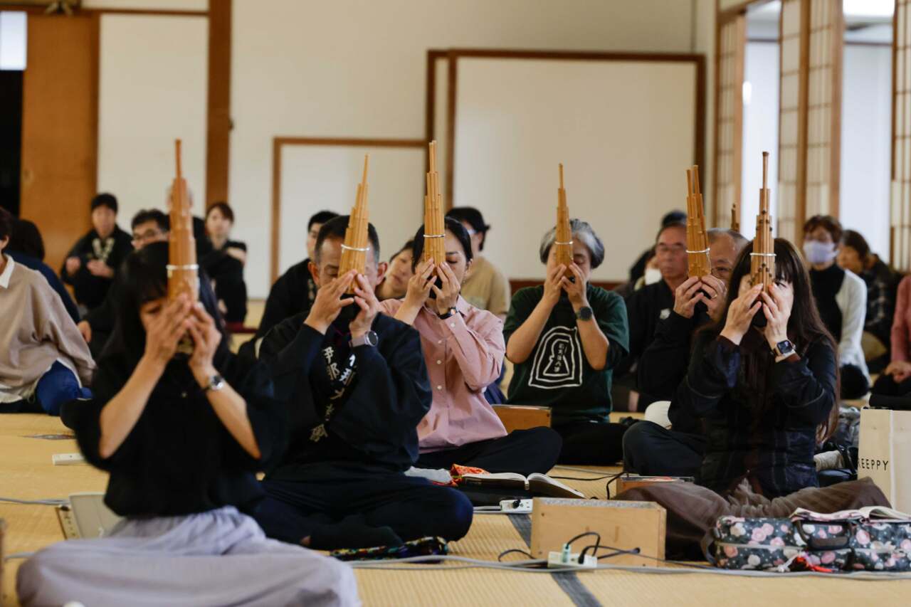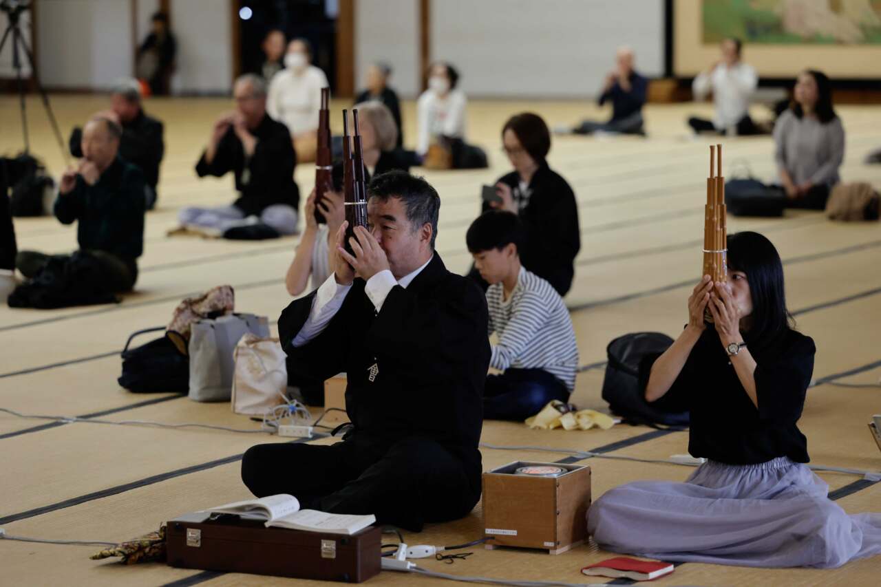 日ごろの練習成果を披露 – 雅楽大合奏お供え演奏会