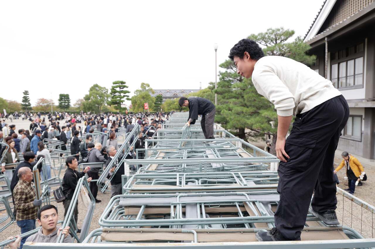 教祖140年祭へ向かう三年千日“締めくくりの年”の本部秋季大祭前後には、各地から直属教会や教区による団参が相次いだ。なかでも、10月25日から27日にかけて、直属教会65カ所のほか、2教区が団参を実施し、1万6,957人が帰参(編集部把握分)。3日間の別席者は計1,757人(うち初席者369人)を数えた。秋の親里では、帰参したようぼく・信者たちが、本部神殿でおつとめを勤め、「おやさとひのきしん」に励んだほか、25日に始まった「教祖140年祭特別展示『おやさま』」の会場へ足を運ぶ姿などが見られた。