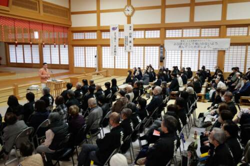 滋賀教区江南北支部(山﨑房生支部長)は11月1日、甲賀市の甲賀大教会で実施。参加した308人の教友たちは、講話に耳を傾けた後、信仰談議に花を咲かせた。