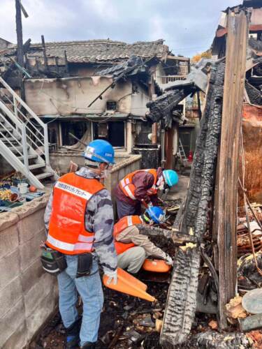 第4次隊は2026年1月5日に現場へ。隊員2人が同地域内の被災民家で「思い出の品の捜索」を手伝った。