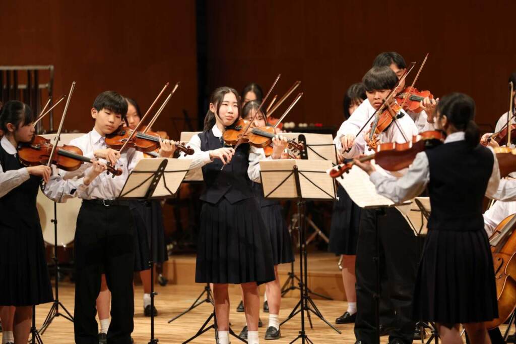 25日には、管内学校の吹奏楽部、弦楽部、箏曲部、音楽クラブの計7団体、生徒・児童226人が出演。全16曲を演奏した。