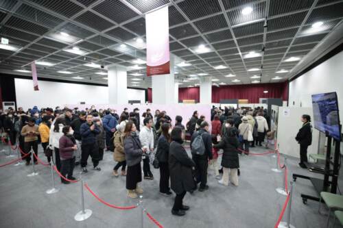 教祖140年祭の祭典直後に実施された26日午後の特別展示では、終始、来場者が途切れることなく、会場には長蛇の列ができた。