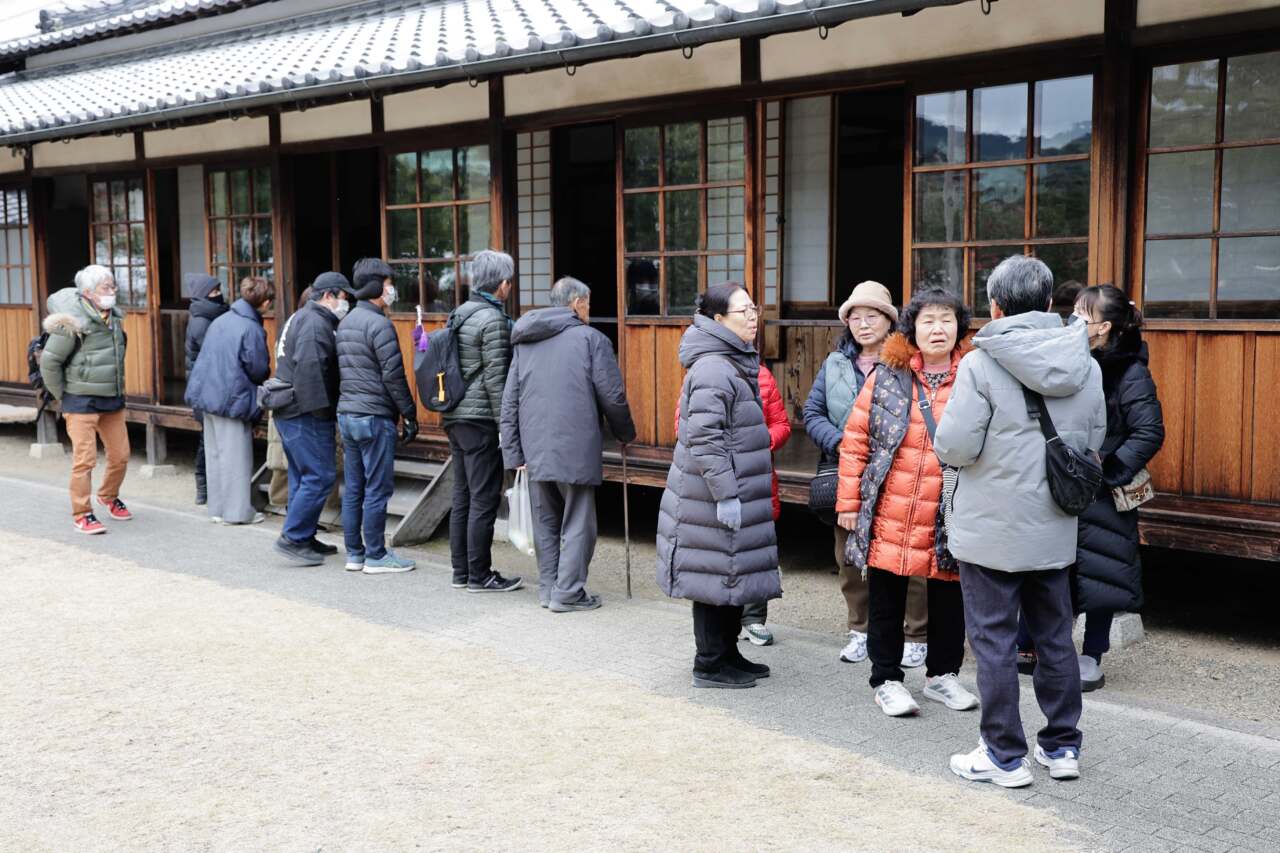 神苑の北庭にある記念建物では、1月24日、25日、27日の3日間、つとめ場所と御休息所、中南の門屋のお居間の扉が開放された。来場者は、教祖が現身をもってお働きくだされていた時代の親里の風景に思いを馳せていた。