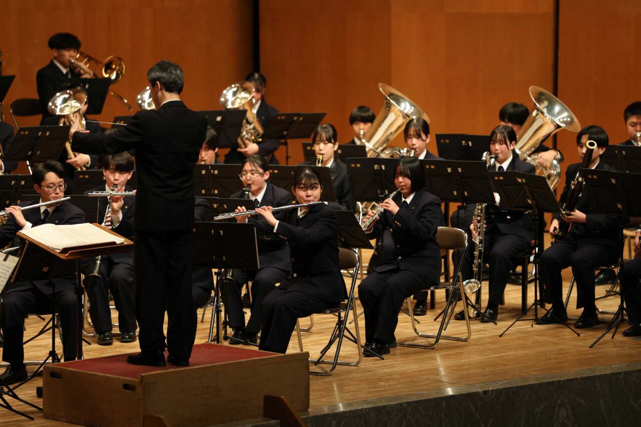 25日には、管内学校の吹奏楽部、弦楽部、箏曲部、音楽クラブの計7団体、生徒・児童226人が出演。全16曲を演奏した。