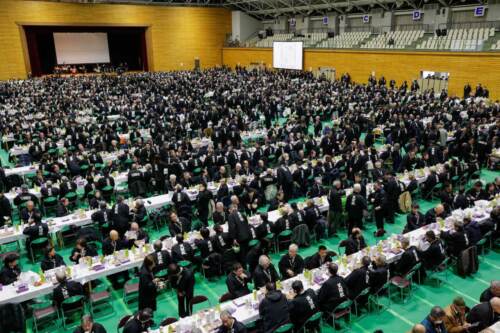 教祖140年祭を終えた親里では、1月28日から2月1日にかけて「教会長御招宴」が開かれ、教会長がおぢばに参集した。 初日となった1月28日、教会長1,750人が会場である天理大学杣之内第1体育館に参集・・・